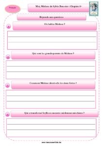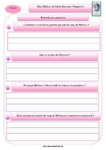 Voici les questionnaires (+ corrigés) concernant les 8 chapitres du livre Moi, Méduse de Sylvie Baussier aux éditions ScriNeo. Ces fiches comprennent pour chaque chapitre des questions ouvertes, des QCM, des exercices de vocabulaire, des mots croisés et mots cachés.