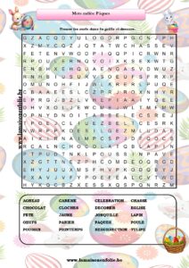 Jeux Jeux de motsMots cachés sur le thème de Pâques par zinnekele 28 mars 202628 mars 2026Laisser un commentaire sur Mots cachés sur le thème de Pâques Voici une fiche de mots cachés (+ corrigé) sur le thème de Pâques.