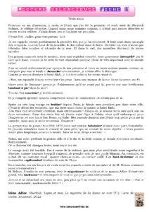Voici la sixième fiche de lecture silencieuse (avec les corrigés). Le principe: une lecture courte (une page) extraite d’un livre, deux types de questions de compréhension, 10 questions ouvertes pour apprendre à répondre en rédigeant une phrase et 10 questions à choix multiple. Cette lecture est extraite du livre Sherlock, Lupin et moi T1: Le mystère de la dame en noir de Irène Adler aux éditions Livre de poche Jeunesse.
