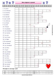 Voici une fiche de mots alignés sur le pluriel des noms (+ corrigés).